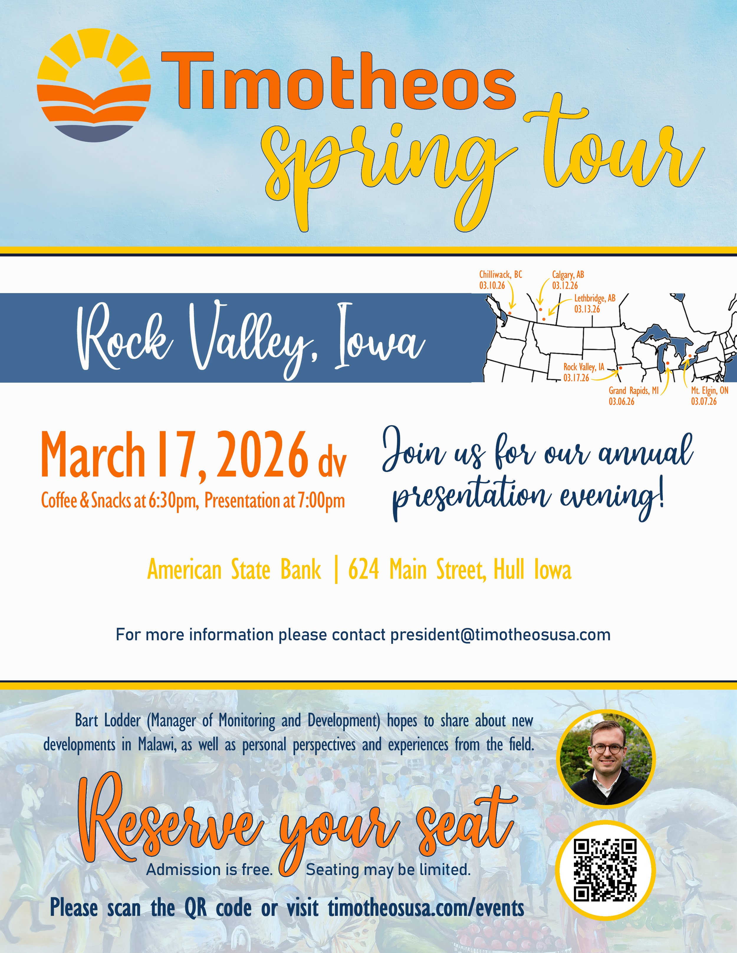 Back to All Events Spring Tour -Rock Valley Iowa Tuesday, March 17, 2026 6:30 PM 7:30 PM American State Bank 624 Main Street Hull, IA, 51239 United States (map) Google Calendar ICS